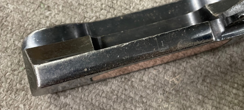 角が結構凹んでいるところもあり、当たって黒い色がとれている部分も無数にあります。錆びてしまう表面加工のヘッドなので、こうなってしまうのはある意味しょうがないことです。