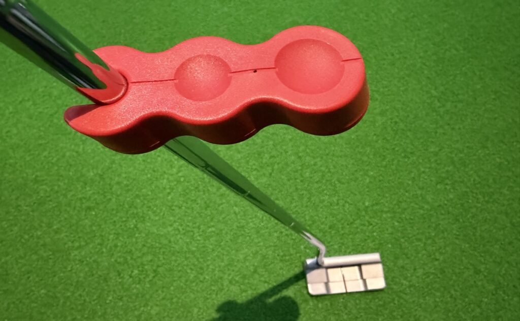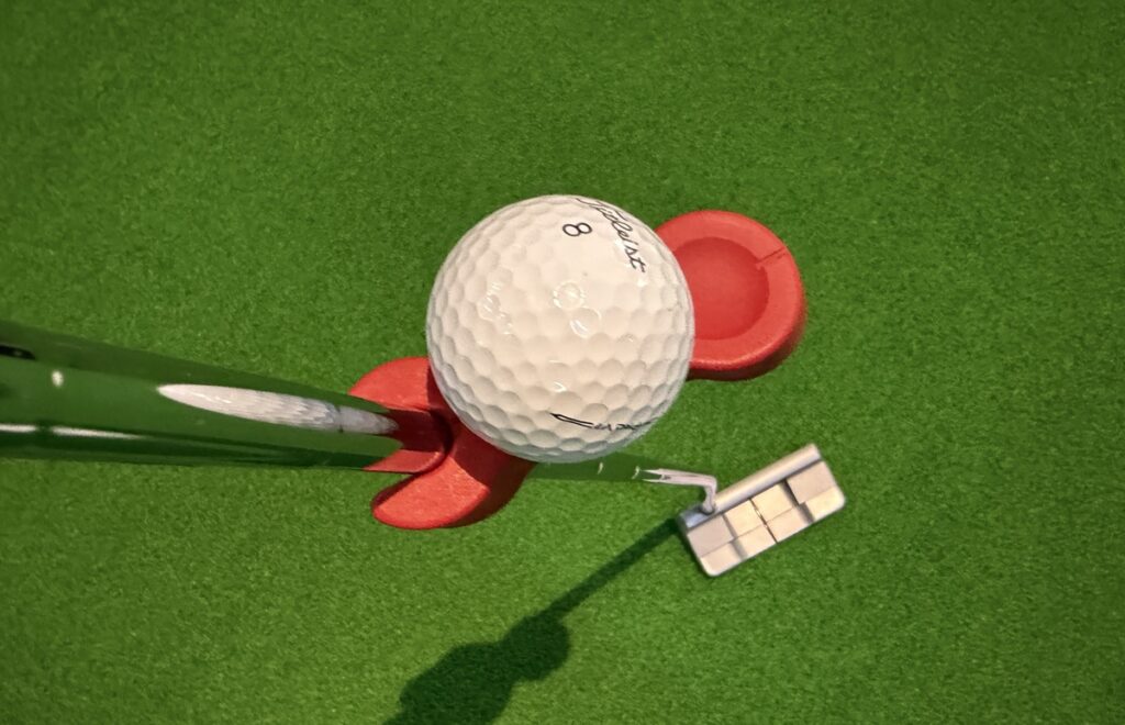 その状態で止めてその上にボールを乗せます。乗せる場所は 2 ヶ所あるのですが、大きめのディンプルと小さめのディンプルです。