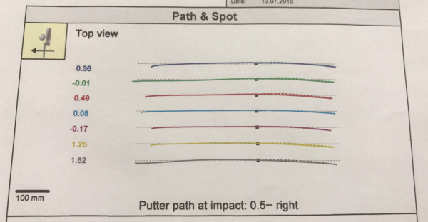 SAM PuttLab でストローク分析をして真っ直ぐに限りなく近い動きをする方はまれにいますが、それは腕を五角形に使って肩から下だけを動かしている打ち方の人です。