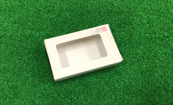 名刺が入っていた箱です。このくらいの大きさの物があればなんでも良いです。これをボールに見立てて打ってみてください。スクエアにインパクトできれば箱は回転せず滑っていきます。