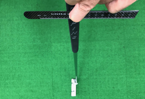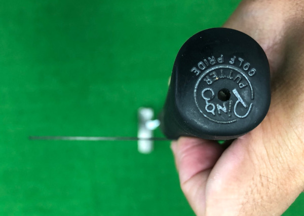 上の画像のような感じで上の平らな面に定規をあてて、上のような感じで見てみてください。これで明らかにフェースの向きと直行するはずの定規のラインが、斜めになってしまっていればグリップ交換をおすすめします。