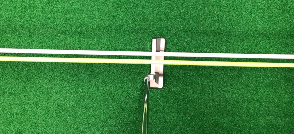 バーを1本にできていないので少しやりにくいところもありますが、真上からヘッドの軌道を見ながら悪い動きにならない練習をするには最適です。