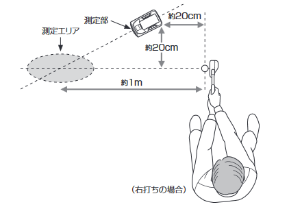 私が持っているのは YUPITERU GST-2 というモデルで、ヘッドスピードと飛距離の目安の数値が表示されます。