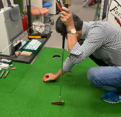 そうすると頭の位置も低くなってきますので、それほど遠い距離でなければラインを見ながらカップもぼんやり見えてきます。