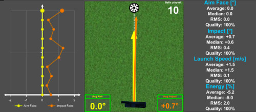 データのとり方は先日と同じで、ボールのラインを合わせて10球打ってみました。