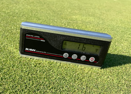 少し前に購入してあったデジタル傾斜計をホームコースの練習グリーンで使ってみました。