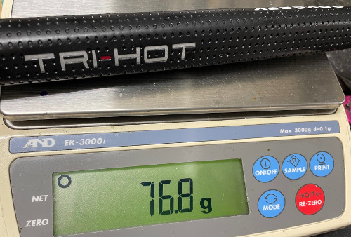 ちなみにグリップは76.8g。手元に107g物重量があるということになります。