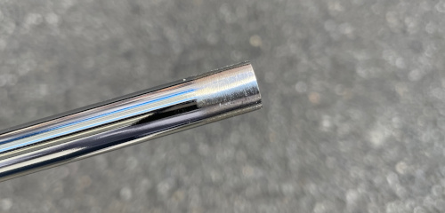 先日お知らせしたパターはポンチのせいで真っ直ぐに入っていなかったのですが、今回はシャフトの先端のざらしが一方向だけやり過ぎていて、それが原因で斜めに入ってしまったようです。