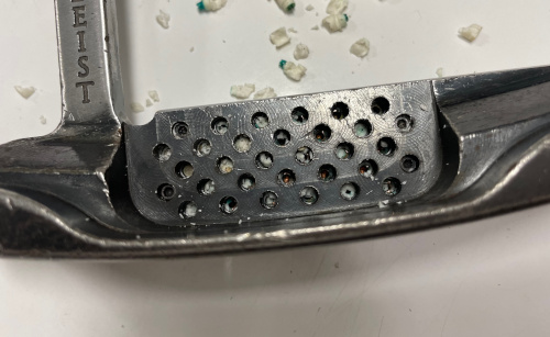 Scotty Cameron のトライレイヤードにはキャビティ内に細かく穴があけられていて、その穴の一つ一つにシリコンが入っています。