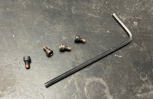 ネジは弱めの接着剤で止めていることが多いので、ネジの周囲を熱します。そして6角レンチをつけ慎重にネジをつぶさないように回します。