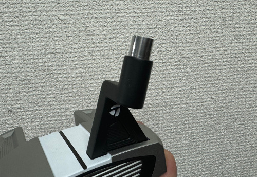 アドレスしてみるとちょっと違和感を感じてよく見てみると、TaylorMade のパターのホーゼル内径は 9.4mm のはずなのに、Tip 径 9.0mm のシャフトが入っていました。