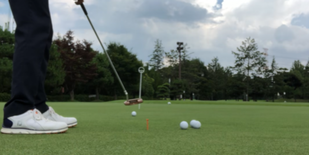 そんなグリーンでパッティングするときの注意点はただ一つ、しっかり強めに薄いラインで打つことです。