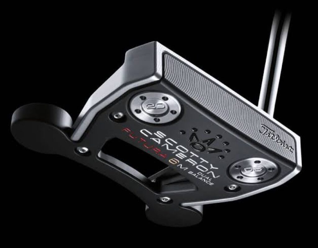 それが Scotty Cameron の FUTURA 6M です。このヘッドはウェイトが4箇所についていて、推測ですが 10/10/20/20 がついていて 350g になっているとすると、ウェイト無しのヘッド重量は 300g 前後になります。