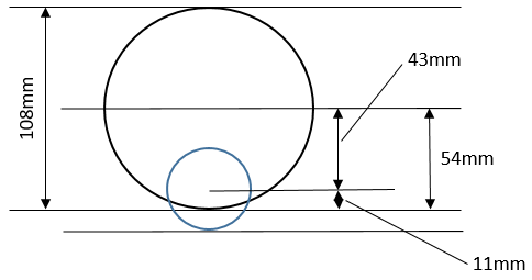 2. ボール3/4がカップの内側に入るカップ中心からのずれ幅(確率高く入る) – 43mm