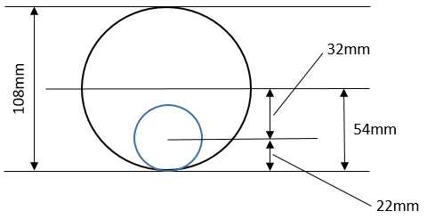 1. ボール全体がカップの内側に入るカップ中心からのずれ幅(完全に入る) – 32mm