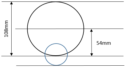 3. ボールの半分がカップに入るカップ中心からのずれ幅(入る場合もある) – 54mm