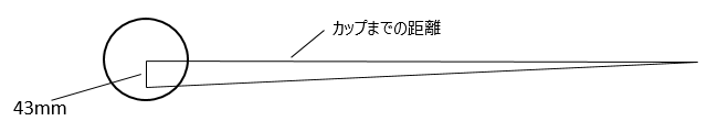 上の画像は43mmの時の図になりますが、ここが32mmの場合と、54mmの場合を計算します。まずはカップまでの距離を、ずれ幅で割った時の数値が以下の数値になります。