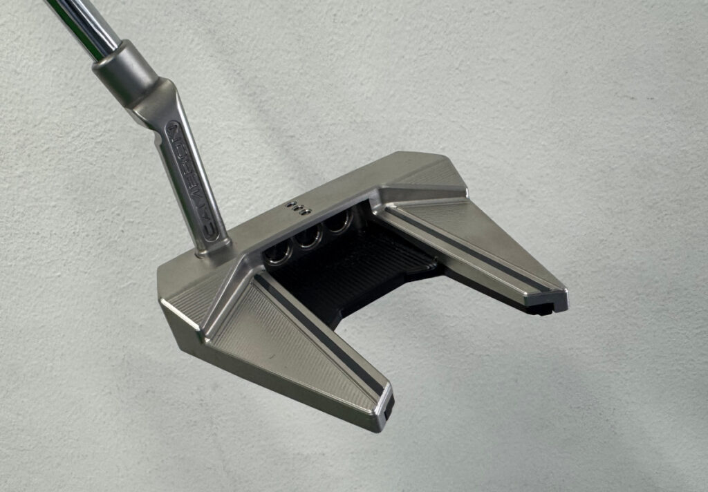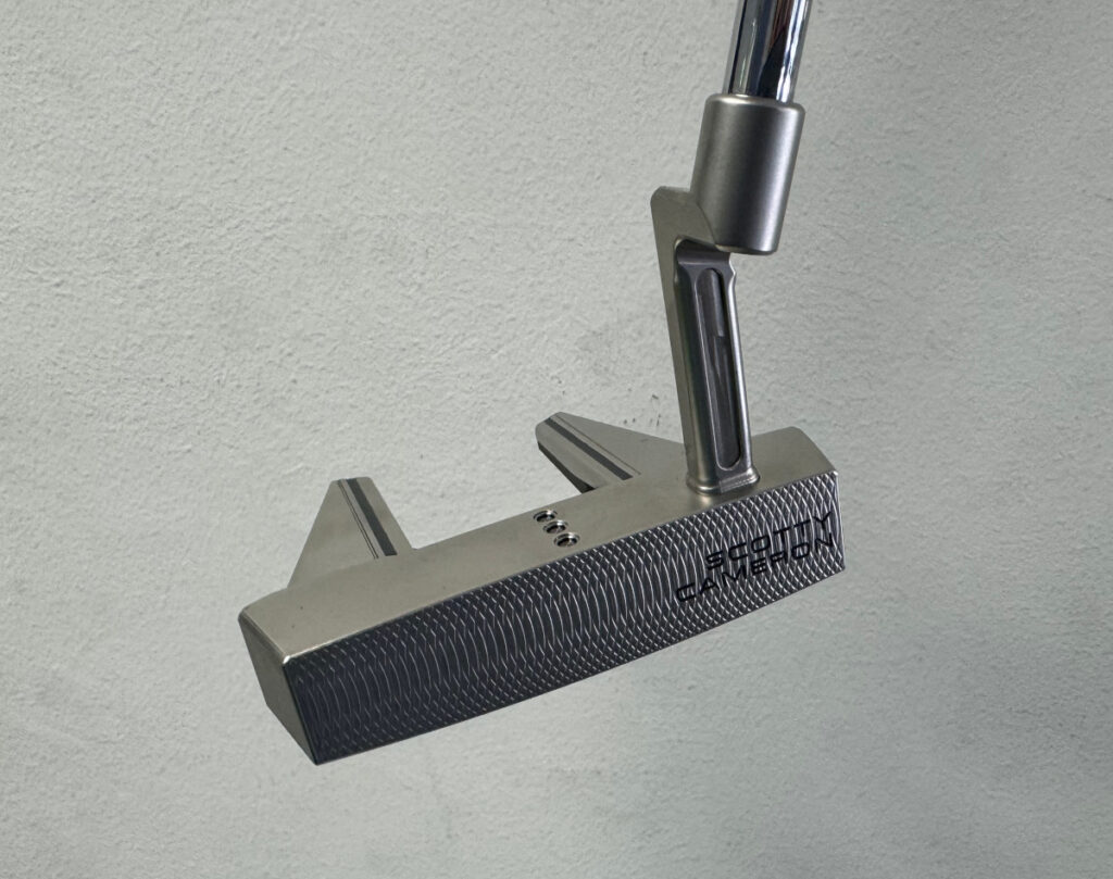 Scotty Cameron のクランクネック付きの角型マレット。削り出しではなく後付けのネックです。